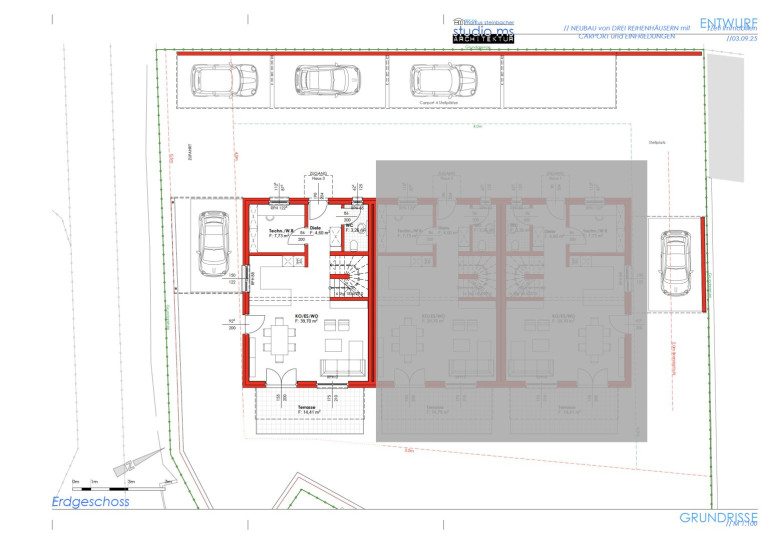 Zwei PKW-Stellplätze pro Einheit inklusive, mit vorbereiteten Maßnahmen für die Errichtung eines Carports.