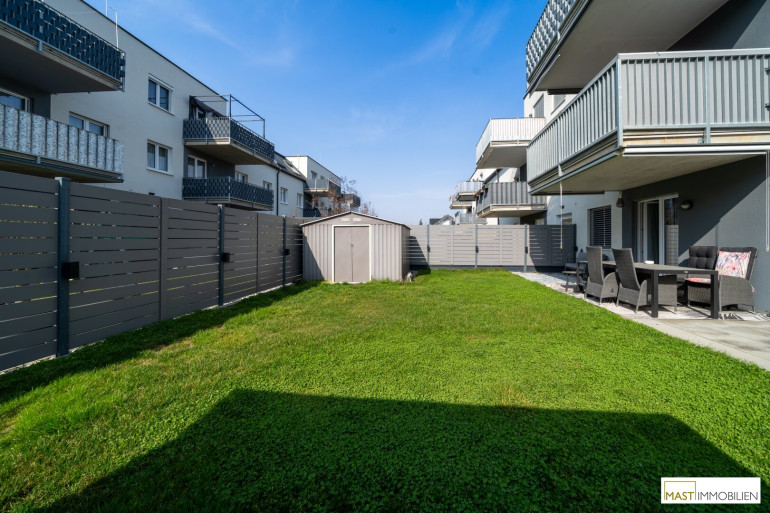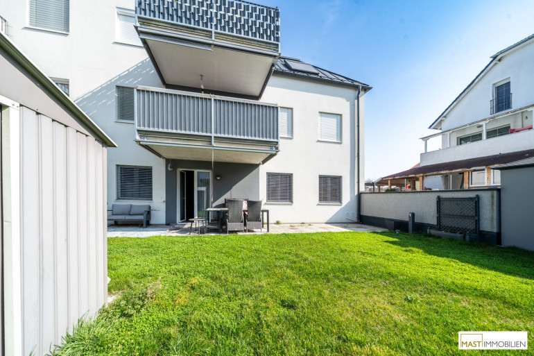 Zum Verkauf steht eine moderne, nahezu neuwertige Gartenwohnung (Erstbezug 2023) in ruhiger Siedlungslage in Strasshof an der Nordbahn, nur etwa 10 km von Wien entfernt.
