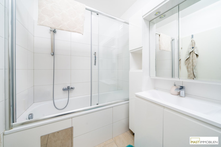 Ein geräumiges Kellerabteil sowie ein Garagenplatz in der Tiefgarage sind der Wohnung ebenfalls zugeordnet.