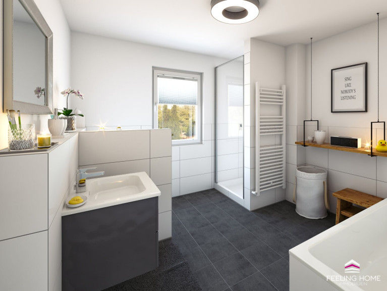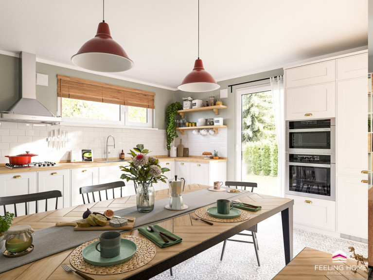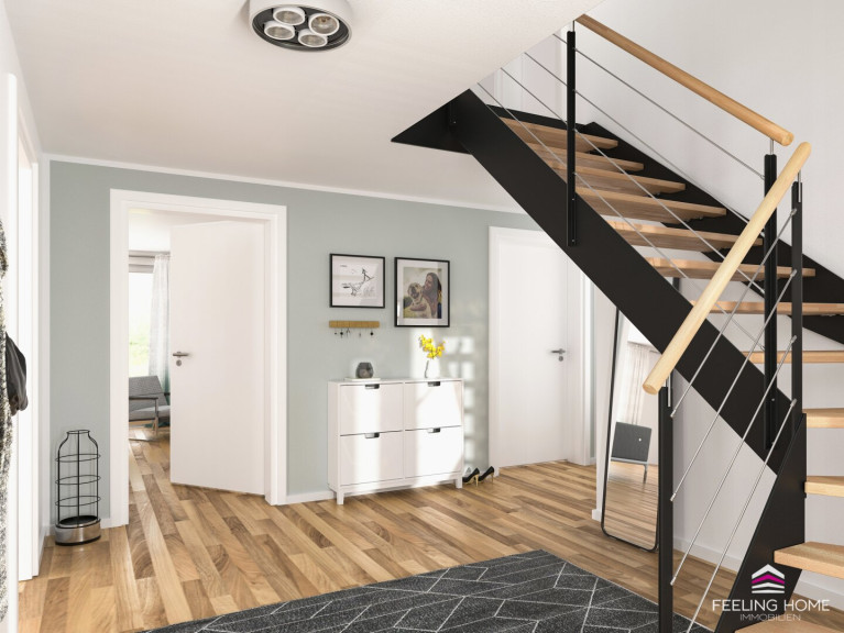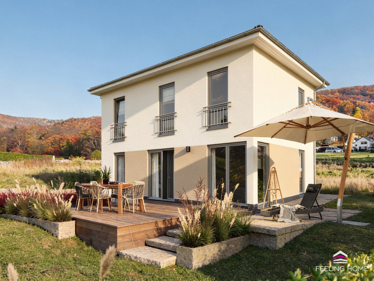 Bis auf die Grundstücksfotos, darf ich freundlichst verweisen, dass die Renderings ein mögliches Wohnambiente simulieren und die Standvilla mit Hilfe von KI in das Grundstück implementiert wurde.