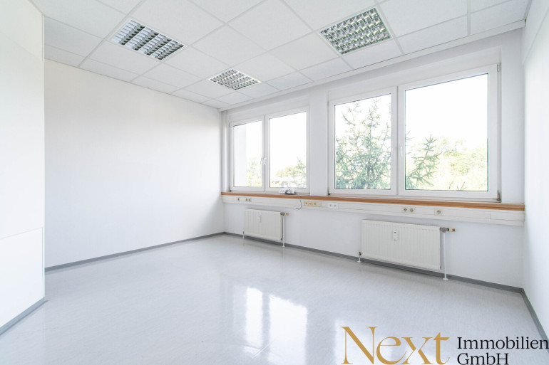 Die ansprechende ca. 90,55m² große Bürofläche zeichnet sich durch eine ideale Raumaufteilung mit einem Großraum- und einem Ein- bzw. Zweimannbüro sowie einer Küchennische aus.