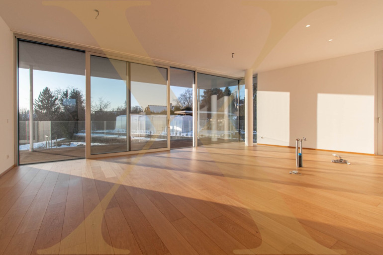 Die diversen Räumlichkeiten dieser Wohnung werden nahezu malerisch in Szene gesetzt - bodentiefe Glasfronten sorgen für eine entspannte und angenehme Wohnatmosphäre. In den Nassbereichen kommen zeitlose Feinsteinzeug-Fliesen zum Einsatz, während in den Wohn- und Schlafräumen ein edler Eichen-Echtholzparkettboden verlegt ist. Die dreifach verglasten Schallschutzfenster werden darüber hinaus mit elektrisch gesteuerten Raffstores versehen.