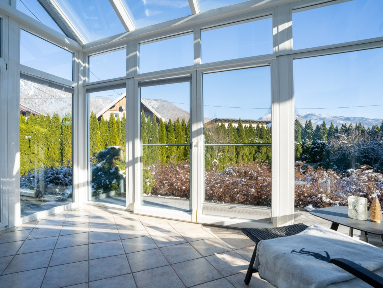 Im offenen Wohn- und Essbereich wärmt an kalten Tagen zusätzlich ein Kachelofen, während draußen der die Natur in den Jahreszeiten ihren Lauf geht. Die bodentiefen Fenster des Wintergartens lassen die Natur und Wärme herein und schaffen eine Atmosphäre, die man nur schwer beschreiben, aber sofort spüren kann. Ihre kreativen Kochkünste entfalten sich in der modern und hochwertig ausgestattet Küche.