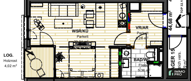* Wohnen- und Schlafen in einem Zimmer und einer Loggia