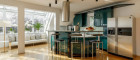 Die offene Maßküche ist harmonisch in den Raum integriert und wird durch einen direkt angrenzenden Abstellraum ergänzt, der praktischen Stauraum beispielsweise für Vorräte und Haushaltsgeräte bietet.