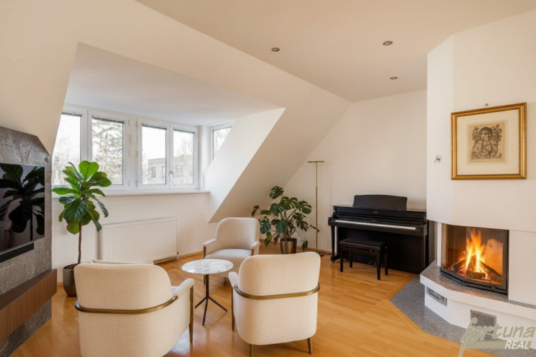 Ein offener Kamin unterstreicht den hochwertigen Wohncharakter.