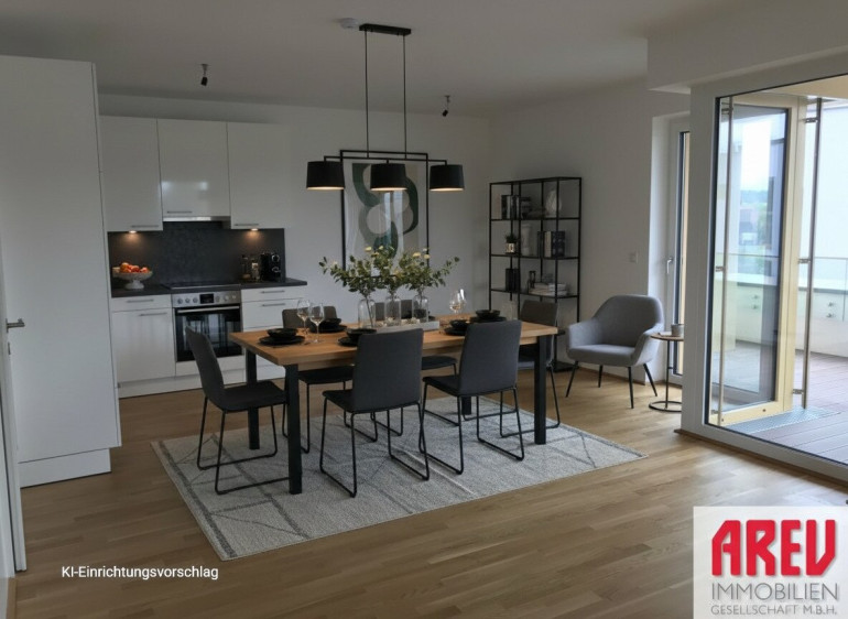 Genießen Sie eine durchdachte Raumaufteilung und moderne Annehmlichkeiten, die das Wohnen in dieser Immobilie zu einem wahren Genuss machen. Die Wohnung verfügt über eine hochwertige Einbauküche, die zum Kochen einlädt. Der offene Wohn- und Essbereich bietet direkten Zugang zu Ihrer eigenen Loggia/Balkon. Hier können Sie entspannte Stunden im Freien verbringen und die frische Luft genießen – perfekt für den Start in den Tag oder um den Abend ausklingen zu lassen.