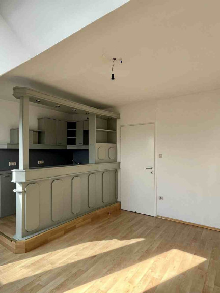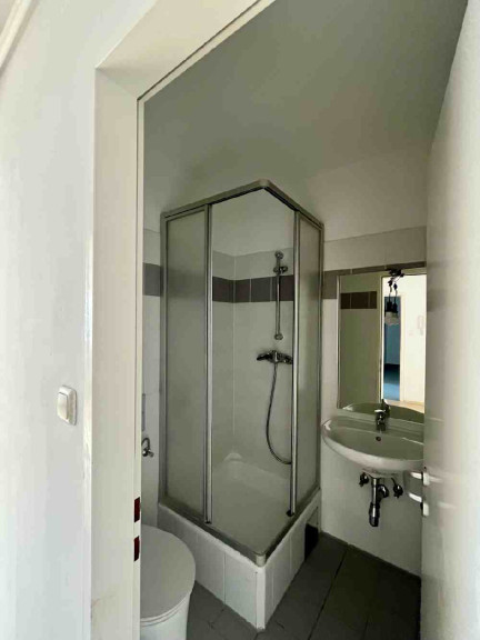 Im Dachgeschoss steht eine 2 Zimmer Wohnung mit einer Bruttomiete von € 950 Euro zur Verfügung. Sie bietet eine kleine, hochwertige Küche mit Markengeräten, darunter ein Siemens Geschirrspüler, sowie ein Badezimmer mit Wanne. Die vorhandenen Dachschrägen schaffen ein gemütliches Wohnambiente und richten sich an Personen, die diesen Wohnstil bewusst bevorzugen.