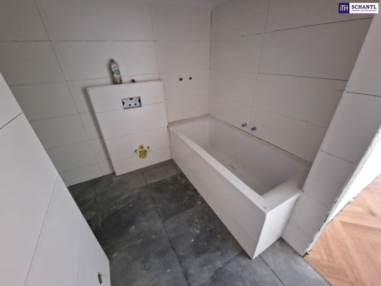 Das Badezimmer ist geschmackvoll gestaltet und mit einer Badewanne ausgestattet – ideal zum Entspannen und Abschalten. Ein besonderes Highlight der Wohnung ist die ca. 10 m² große Außenfläche, die sich ruhig in den Innenhof orientiert. Hier genießen Sie entspannte Stunden in privater Atmosphäre – mitten in der Stadt.
