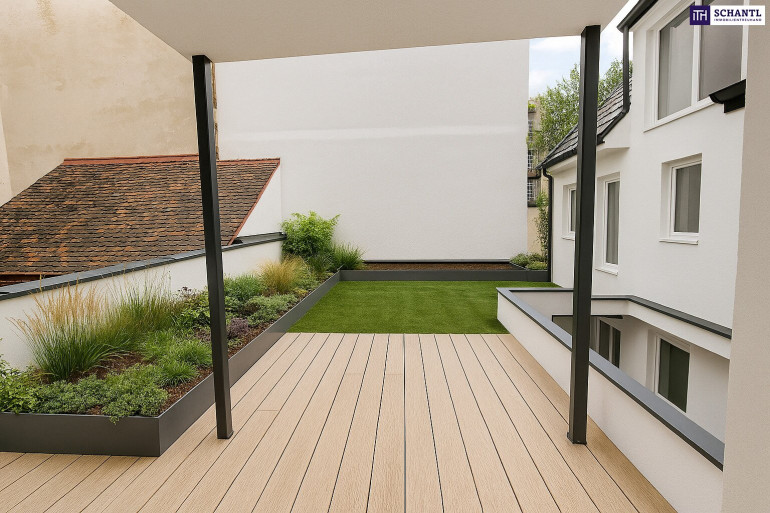 Terrasse: Großzügige 32 m² Außenfläche mit ruhiger Hoflage