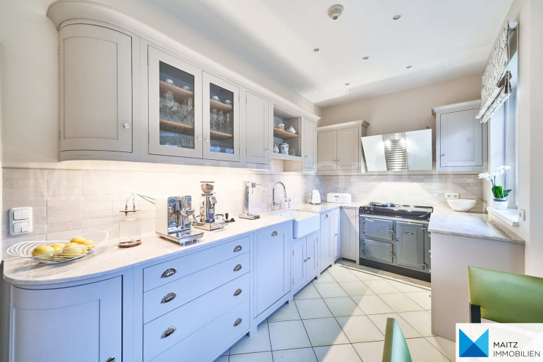 # Küche: Ausstattung von Fa. Steinwender; engl. Neptune-Küche; Herd Fabrikat "AGA" (eingebaut 2023)