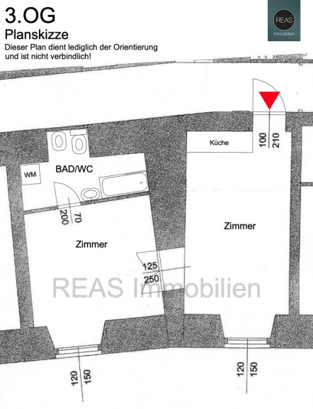 Das Objekt befindet sich im 3. Stock (mit Lift) und hat die folgende Raumaufteilung: