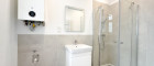 - Fein abgestimmte Materialwahl bei Fliesen, Armaturen und Beleuchtung