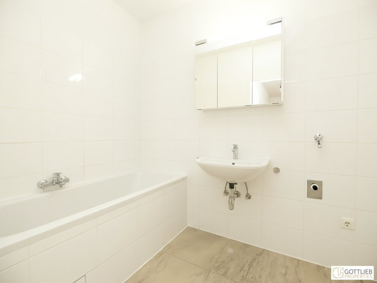 + Badezimmer mit Badewanne, Waschbecken, Handtuchwärmer sowie Waschmaschinenanschluss