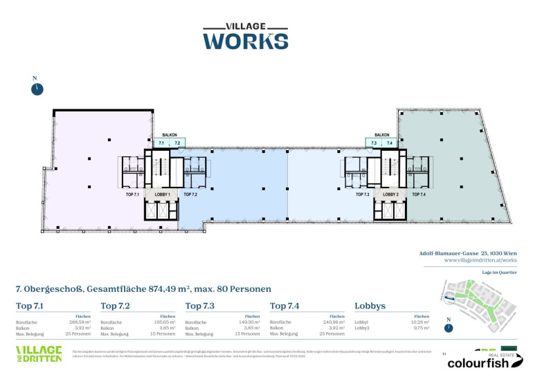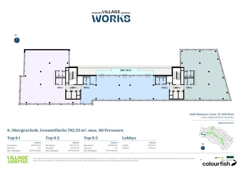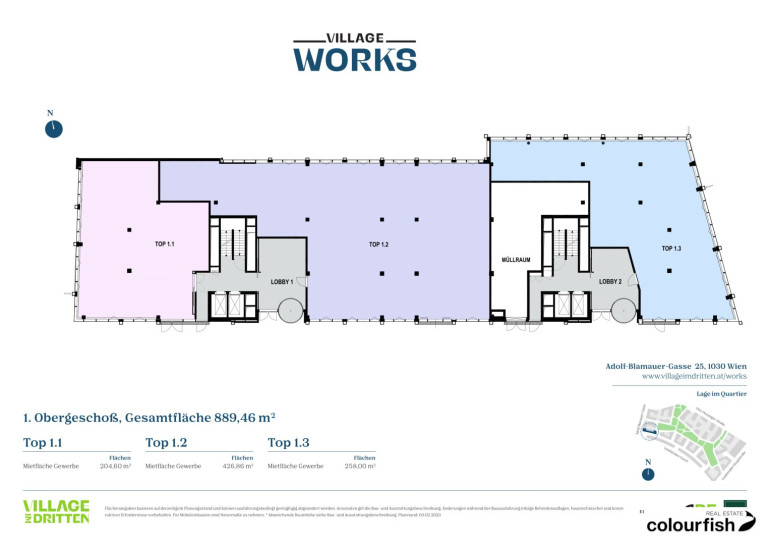 VILLAGE WORKS ist Teil der groß angelegten Quartiersentwicklung VILLAGE IM DRITTEN im 3. Wiener Gemeindebezirk. Das Projekt vereint Wohnen, Arbeiten, Handel, Gastronomie, Bildung und großzügige Grünflächen zu einem lebendigen, nachhaltig geplanten Stadtquartier. Kurze Wege, eine hohe Aufenthaltsqualität und ein klimafreundliches Gesamtenergiekonzept machen das Quartier zu einem zukunftsorientierten Standort für moderne Unternehmen.