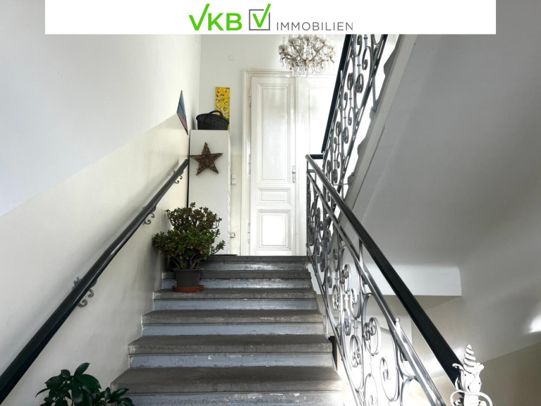 Die gegenständliche Altbauwohnung befindet sich im Hochparterre und ist über ein altehrwürdiges Treppenhaus mit nur wenige Stufen bequem zu erreichbar. Besonders hervorzuheben ist die ideale Lage des Eigengartens sowie des KFZ-Abstellplatzes, welche sich direkt neben dem Eingangsbereich befinden. Dadurch entsteht ein hohes Maß an Ruhe und Privatsphäre, mit dem Gefühl eines nahezu eigenständigen Wohnens.