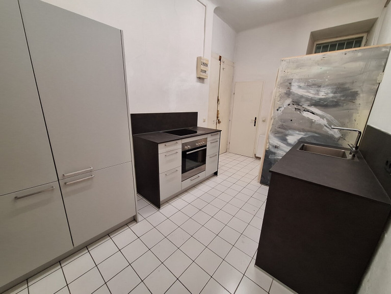 - Küche mit Dusche (Spüle, E-Herd, Backrohr, Geschirrspüler, Kühl-, Gefrierkombinationsschrank, Fenster), Eingang über Stiegenhaus