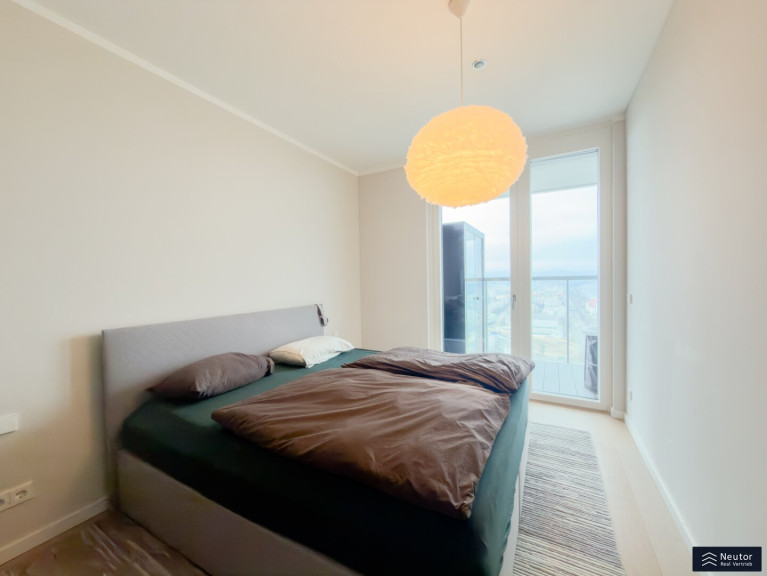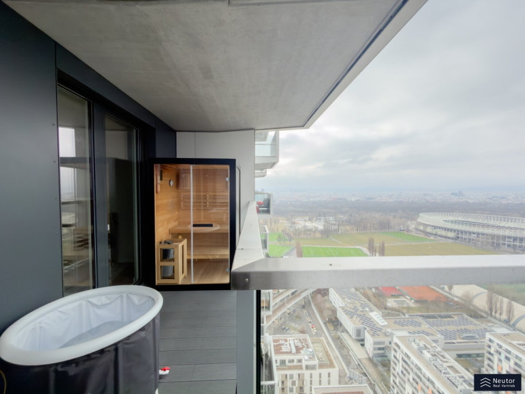 Willkommen in der atemberaubenden Luxusimmobilie "Marina Tower". Diese exklusive Wohnung befindet sich im 32. Stockwerk auf einer Höhe von 110 Metern und bietet Ihnen einen unvergleichlichen Fernblick über Wien. Mit hochwertigem Umbau, einem optionalen Tiefgaragenstellplatz, Deckenkühlung, Fußbodenheizung und edlem Parkettboden erleben Sie hier ein unvergleichliches Wohngefühl und ein außergewöhnliches Ambiente. Die ausgezeichnete Lage in der Nähe der U-Bahn-Station U2 Donaumarina ermöglicht Ihnen in wenigen Minuten die Innenstadt zu erreichen. Die 3 großzügig Räume mit dem Wohn-und Essbereich als Herzstück der Wohnung mit direktem Zugang zum Balkon bietet die perfekte Mischung aus Eleganz und Komfort. Ein zusätzlicher Abstellraum sorgt für Stauraum und Ordnung. Für Ihre Gäste steht ein separates WC mit Handwaschbecken zur Verfügung, welches absolute Privatsphäre garantiert. Die 2 Badezimmer dieser Immobilie sind wahre Highlights. Das erste Badezimmer beeindruckt mit einer begehbaren Dusche und einem Ankleidebereich, der direkt mit dem Schlafzimmer verbunden ist. Das zweite Badezimmer bietet eine luxuriöse Badewanne und eine weitere begehbare Dusche, ebenfalls mit direktem Zugang zum Schlafzimmer. Beide Badezimmer sind mit wunderschönen dunkelgrünen Fliesen ausgestattet, die Eleganz und Raffinesse ausstrahlen. Der großzügig gestaltete Wohn- und Essbereich besticht durch seine moderne Ausstattung. Sie gelangen vom Schlafzimmer sowie vom Wohn-und Essbereich auf den Balkon und die Loggia, von wo aus Sie einen spektakulären Blick auf die Donau und das Ernst-Happel-Stadion sowie über die Stadt genießen können. Solch grandiose Sonnenuntergänge haben Sie wahrscheinlich noch nie gesehen. Große Fensterfronten sorgen für viel Licht und schaffen eine lichtdurchflutete Atmosphäre. Die 2 Schlafzimmer sind mit edlem Parkettboden ausgelegt und bieten Ihnen einen ruhigen Rückzugsort für erholsamen Schlaf und pure Entspannung. Dank der Fußbodenheizung genießen Sie das ganze Jahr über angenehme Wärme und Behaglichkeit. Das Apartment befindet sich im 32. Stockwerk und bietet Ihnen einen atemberaubenden Ausblick über die Stadt. Hier erleben Sie das Gefühl von Freiheit und Exklusivität, das nur eine solch hochwertige Immobilie bieten kann.
