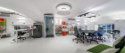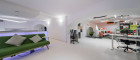 Im unteren Bereich kann man zum Teil die Größe der verschiedenen Flächen durch bewegliche Raumteiler variieren.