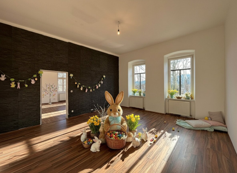 Zur Miete gelangt eine stilvolle Wohnung in Payerbach. Durch die hohen Fenster kommt viel Licht in die Räumlichkeiten.