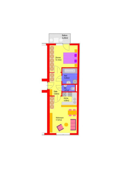 Die Wohnung befindet sich im 1. Obergeschoss eines gepflegten Hauses mit Lift und verfügt über eine Wohnfläche von ca. 49 m². Sie überzeugt durch eine sehr gut durchdachte und funktionale Raumaufteilung, die ein angenehmes Wohngefühl vermittelt.