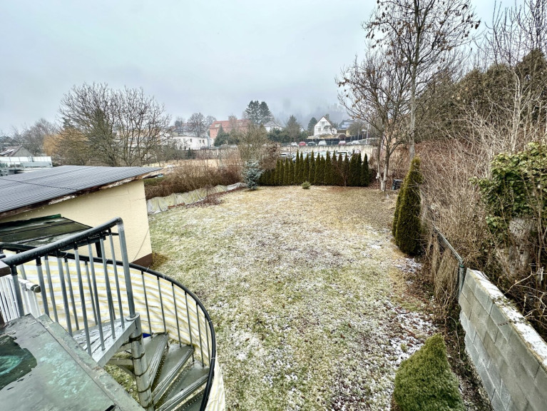 Von der Dachterrasse aus gelangt man direkt in den rund 400 m² großen Garten, der ausschließlich zur eigenen Nutzung zur Verfügung steht – ein echtes Highlight für alle, die Ruhe, Privatsphäre und Grünfläche schätzen.