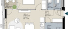 Diese 2-Zimmer-Wohnung erstreckt sich auf ca. 55 m² (inkl. Loggia) und gliedert sich wie folgt: