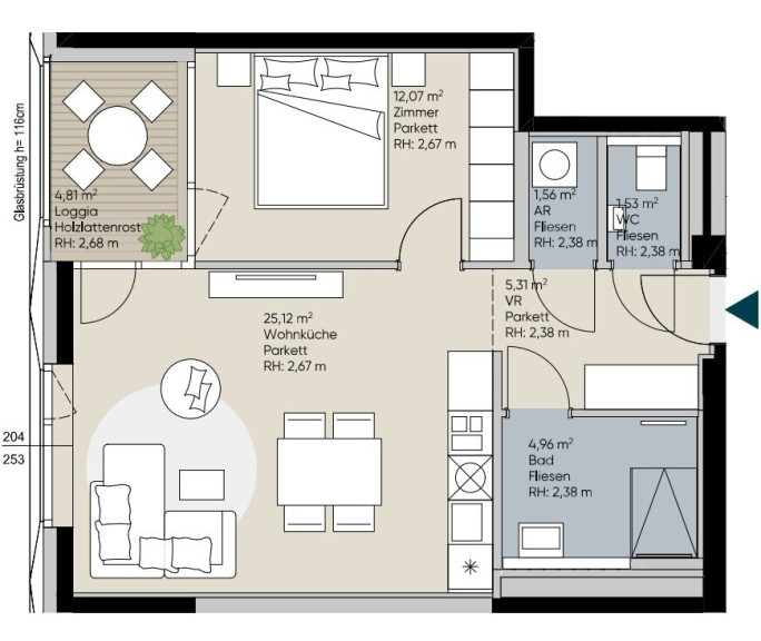 - Loggia (4,81m²)