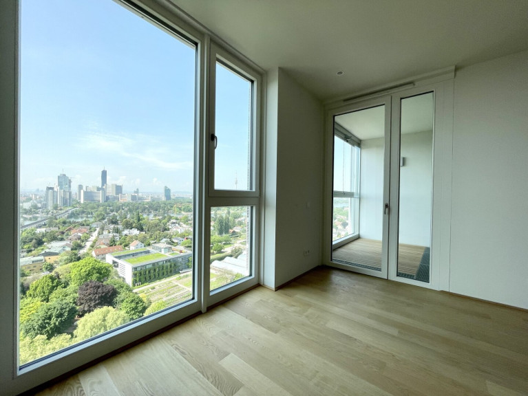 Diese außergewöhnliche Wohnung mit Blick über die Stadt und die Donau befindet sich im 18. Liftstock des VIENNA TWENTY TWO welches 2023 fertiggestellt wurde und unmittelbar bei der Ubahn-Station Kagran (U1) und dem Donauzentrum sowie der Vienna International School (VIS) liegt. Der Turm hat insgesamt 33. Stockwerke und verfügt über eine Vielzahl von Annehmlichkeiten und Freizeitangeboten.