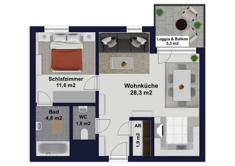Loggia/Balkon (5,30 m²)