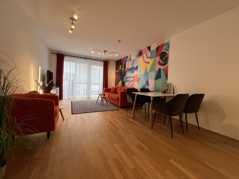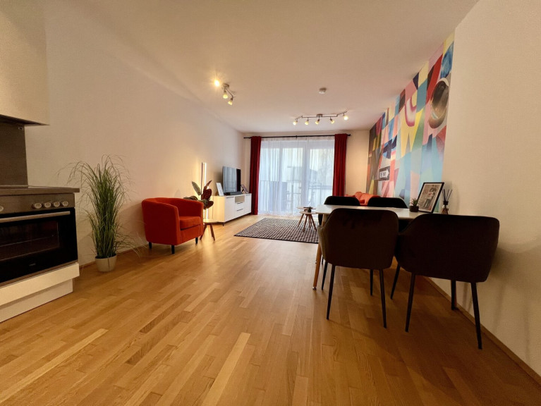 Zur Vermietung gelangt eine hochwertige, voll möblierte 2-Zimmer-Gartenwohnung im 1. Liftstock eines modernen Neubau-Wohnhauses aus dem Jahr 2016 in urbaner, aber trotzdem ruhiger Lage im 16. Wiener Gemeindebezirk.