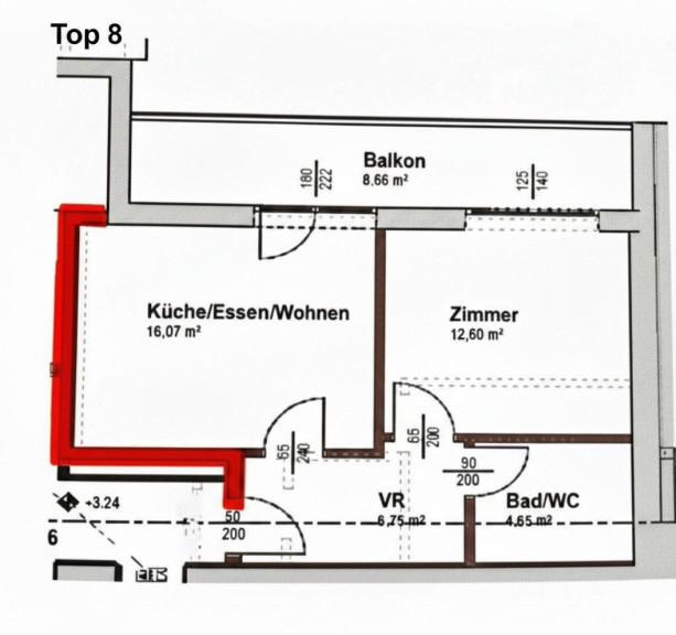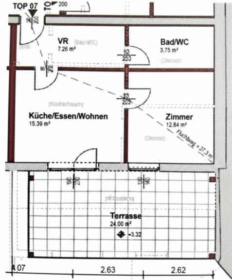 Raumaufteilung / Flächen: Wohnfläche 39,10 m² + Balkon 8,69 m²