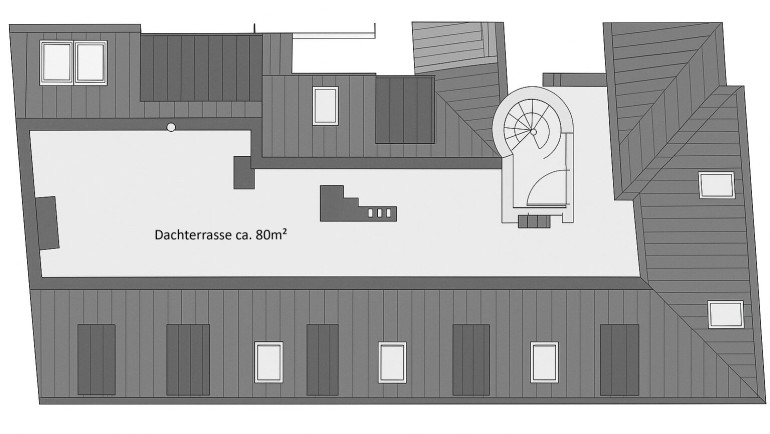 Fenster & Licht: Großzügige Velux-Dachflächenfenster mit elektrischen Rollläden (Fernbedienung) sowie zusätzliche Gaupenfenster mit Schallschutzverglasung und elektrischer Steuerung bringen Licht und Ruhe zugleich.
