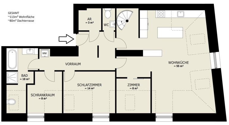 Exklusive Dachgeschosswohnung mit 80m² Panorama-Terrasse nähe Schlosspark Laxenburg