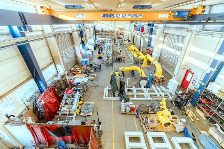 - Werkstättenhalle mit Hochregallager, Magazin, mehrere Schwerlastkräne