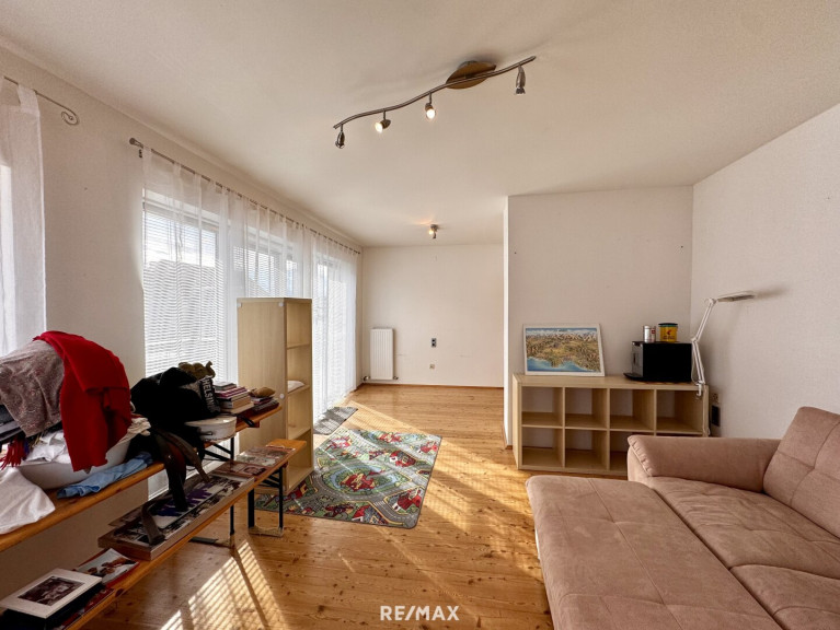 Im Obergeschoss befindet sich die ca. 93 m² große 3 Zimmer Wohnung. Ein besonderes Highlight ist die ca. 34 m² große Terrasse, die zum Entspannen, Verweilen oder geselligen Beisammensein einlädt. Die großzügige Wohnküche wird möbliert übergeben.