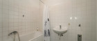 Vom Vorraum der Wohnung aus, gelangt man in das Badezimmer mit Wanne, das separate WC, sowie in den ruhigen Innenhof gelegene Küche.