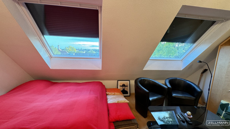 In den oberen Geschossen befinden sich mehrere Schlaf-, Kinder- und Arbeitszimmer, die durch ihre gute Belichtung und flexible Nutzbarkeit überzeugen. Dachflächenfenster sorgen in den oberen Ebenen für viel Tageslicht und eine angenehme Wohnatmosphäre. Derzeit stehen 4,5 Zimmer zur Verfügung; bei Bedarf kann die Raumaufteilung mit überschaubarem Aufwand auf bis zu 5,5 Zimmer erweitert werden – ideal für wachsende Familien oder zusätzliche Homeoffice-Bereiche.