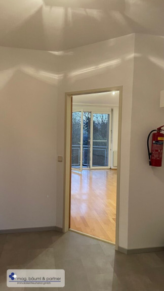 Mit dem Lift kommt man in ein freundliches offenes Stiegenhaus . Ein zentrales Vorzimmer mit Garderobe ist das Willkommen dieser hübschen Wohnung. Das Badezimmer mit Dusche , Doppelwaschbecken und Teilmöblierung mit Fenster ist linker Hand . Das Wohnzimmer mit Ausgang auf den überdachten Balkon ist geräumig und mit Parkett. ,abgetrennt ist die Tischlerküche mit einer grossen Arbeitsftfläche Fenster und allen Geräten .Das Schlafzimmer ist mit einem eleganten Kasten ,einem Fenster auf den Balkon und eine absolute Ruheoase. Der Waschmaschinen anschluss ist in einem kleinen Seitenraum. Gegenüber der Wohnung ist ein ca. 4m² grosser trockener Lager und Abstellraum.