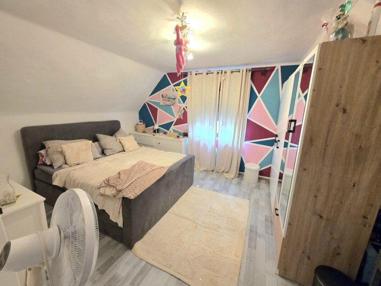 Im Dachgeschoss finden Sie ein geräumiges Schlafzimmer und ein weiteres (Durchgang-) Zimmer mit Zugang zum südlichen Balkon. Vom hier aus genießen Sie einen schönen Ausblick auf die umliegende Natur.