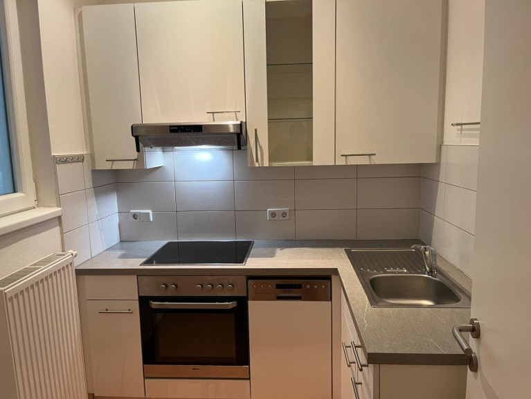 Fliesen, Laminatboden, Fernwärme, Einbauküche, Dusche