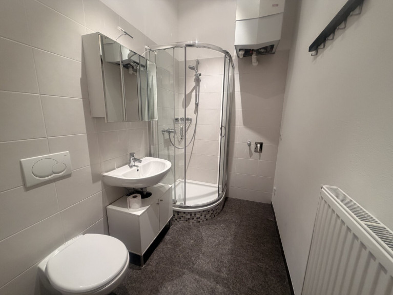 Bad mit Dusche, WC und Waschmaschinenanschluss,