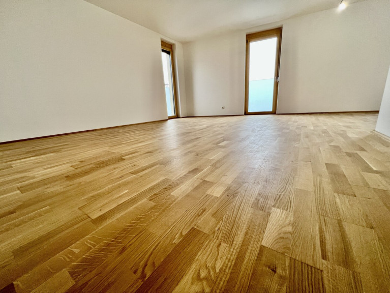 Das Highlight der Wohnung ist das geräumige Wohnzimmer, welches mit hochwertigem Parkettboden und Fußbodenheizung ausgestattet ist. Hier können Sie gemütliche Abende mit Ihren Liebsten verbringen. Die offene Küche ist bereits mit einer modernen Einbauküche ausgestattet, die keine Wünsche offen lässt. Hier macht das Kochen gleich doppelt so viel Spaß!
