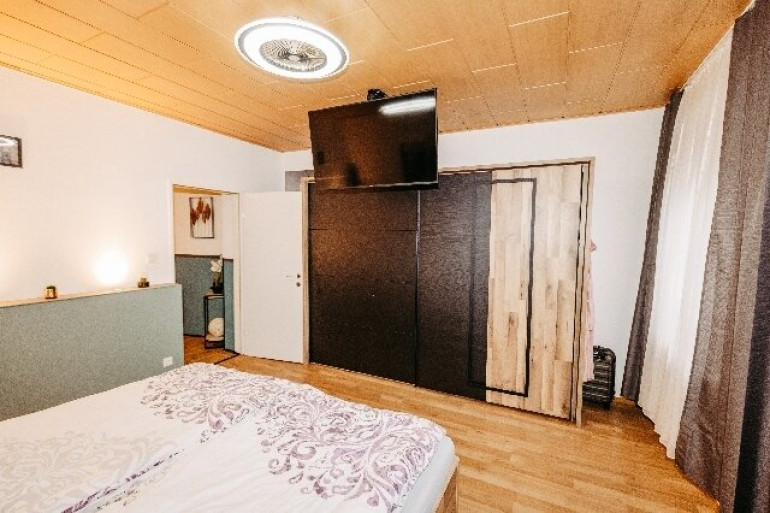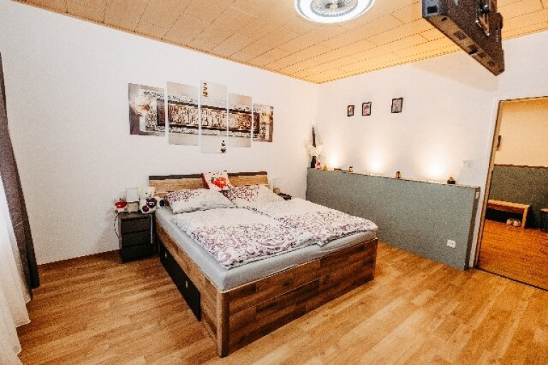 Schlafzimmer (20 m²), Fliesenbad mit Dusche und Waschmaschinenanschluss, Speis, WC,