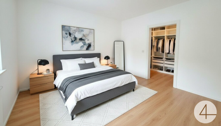 Weiteres verfügt die Wohnung über ein gemütliches Schlafzimmer mit angrenzenden Schrankraum.