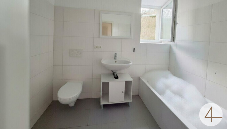 Das Badzimmer ist mit einer Badewanne ausgestattet, ideal für entspannende Wohlfühlmomente nach einem langen Tag.