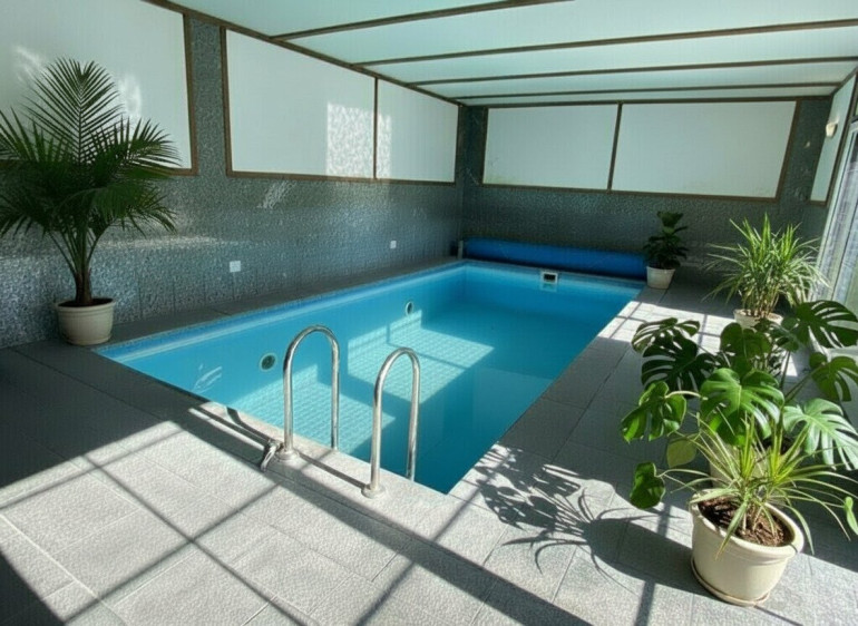Parkett, Fliesen, Laminatboden, Steinboden, Gas, Öl, Solarenergie, Zentralheizung, Einbauküche, Bad mit Fenster, Badewanne, Dusche, Kabel/Satelliten-TV, Garage, Swimmingpool