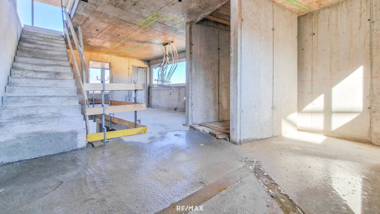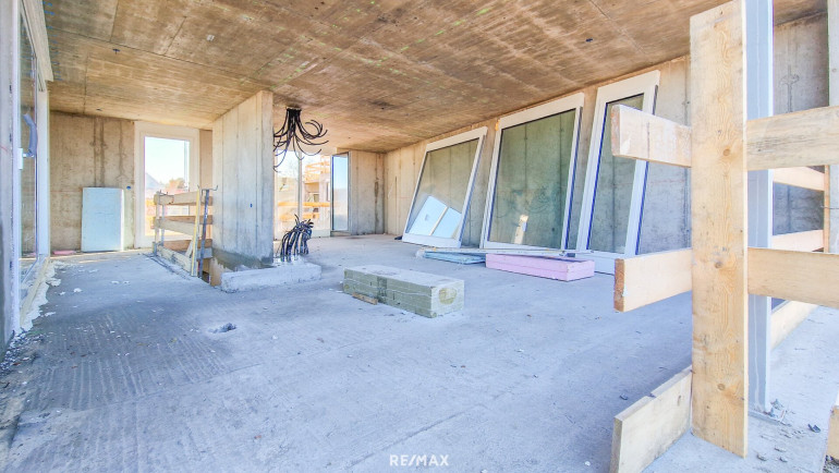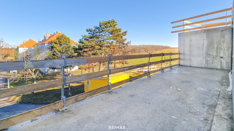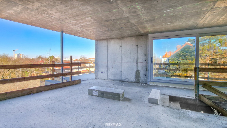 2. OG: Ca. 44,83 m² große Wohnküche mit Zugang zu 2 Terrassen (ca. 29,22 m² u. 13,83 m²), ein Zimmer, separate Toilette, Abstellraum sowie Aufzug.