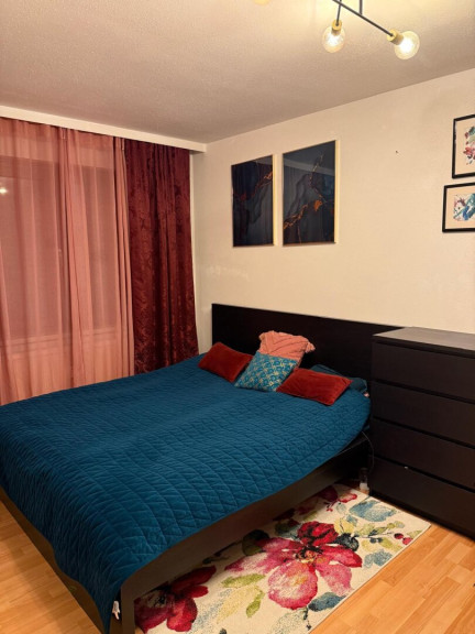 Das Schlafzimmer ist angenehm proportioniert und erlaubt problemlos die Unterbringung eines großen Kleiderschranks, ohne an Raumgefühl zu verlieren.