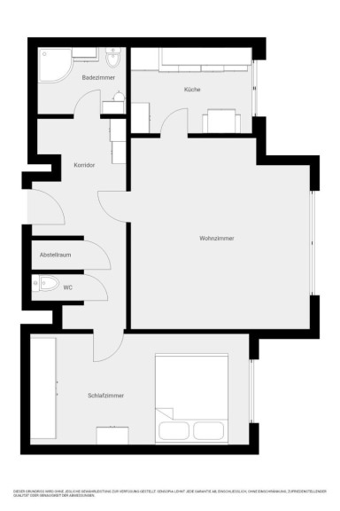 Das Badezimmer und das WC sind getrennt ausgeführt – ein Detail, das im Alltag spürbaren Komfort bietet. Zusätzlich steht eine Abstellkammer zur Verfügung, die wertvollen Stauraum schafft.